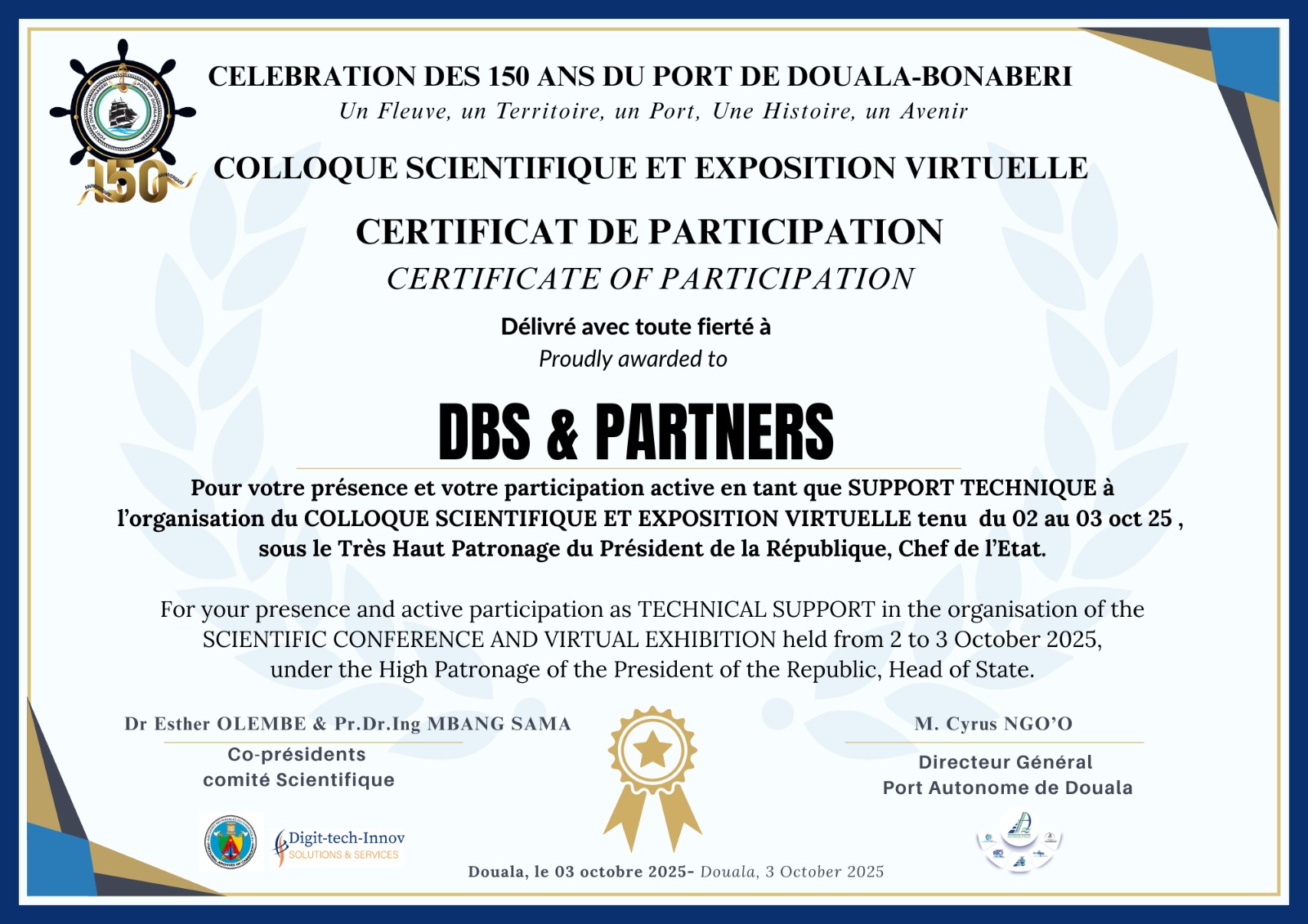 Support Scientifique et Technique dans l’organisation des 150 Ans du Port de Douala Bonaberi. Du 02 au 03 octobre 2025
